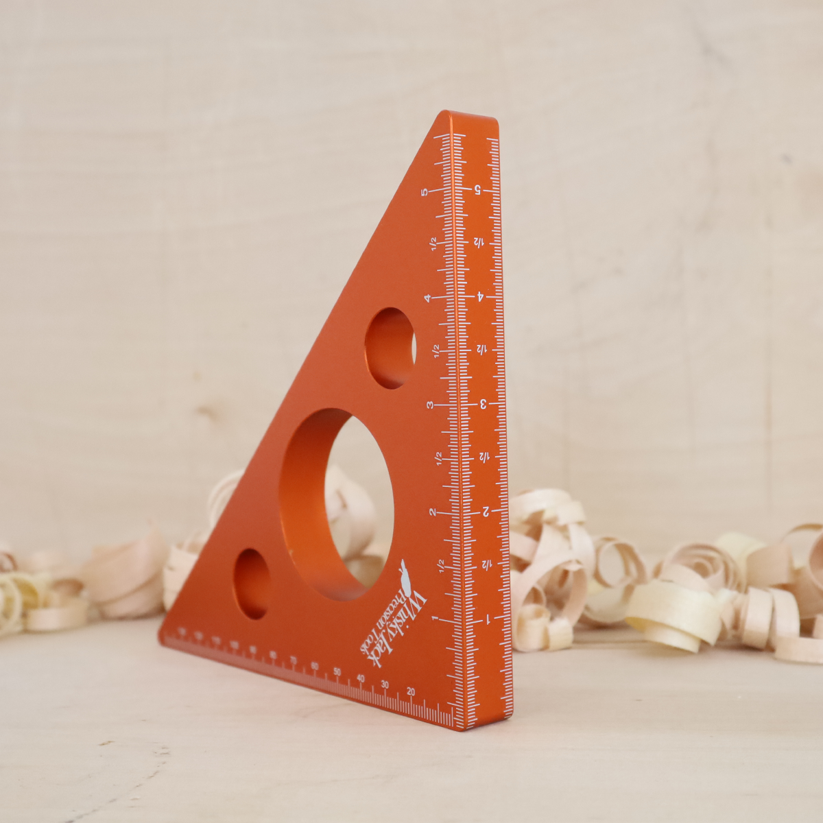 The Whisky Jack 5 1/2″ M/E Triangle Set Up Square is the perfect fusion of rugged durability and measurement precision, making it an essential tool for carpenters, woodworkers, and DIY enthusiasts alike. Expertly crafted from CNC-machined anodized aluminum alloy, this compact square is built to endure heavy daily use without warping or wearing down. Its striking orange rust- and corrosion-resistant finish ensures long-lasting reliability, even in challenging workshop environments.