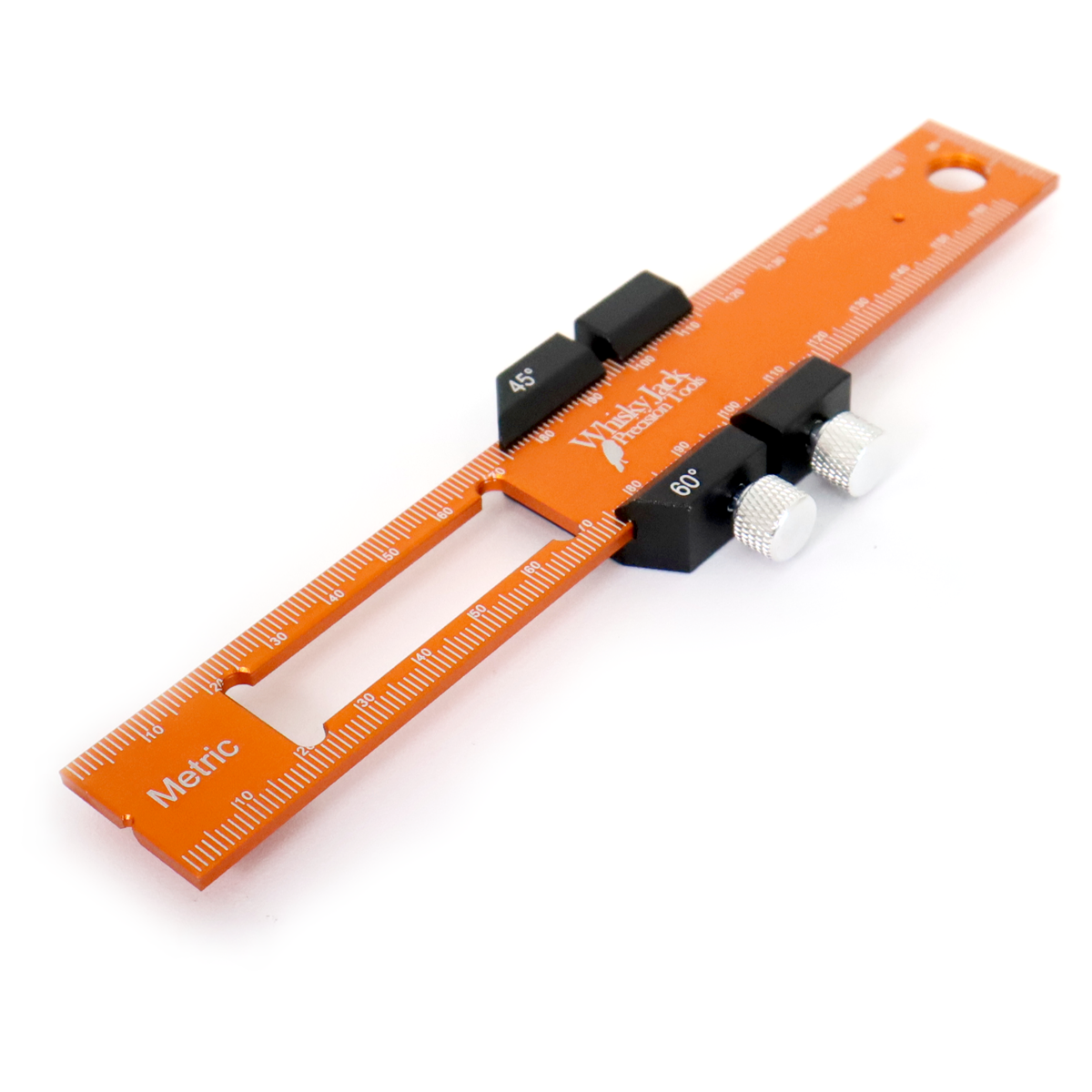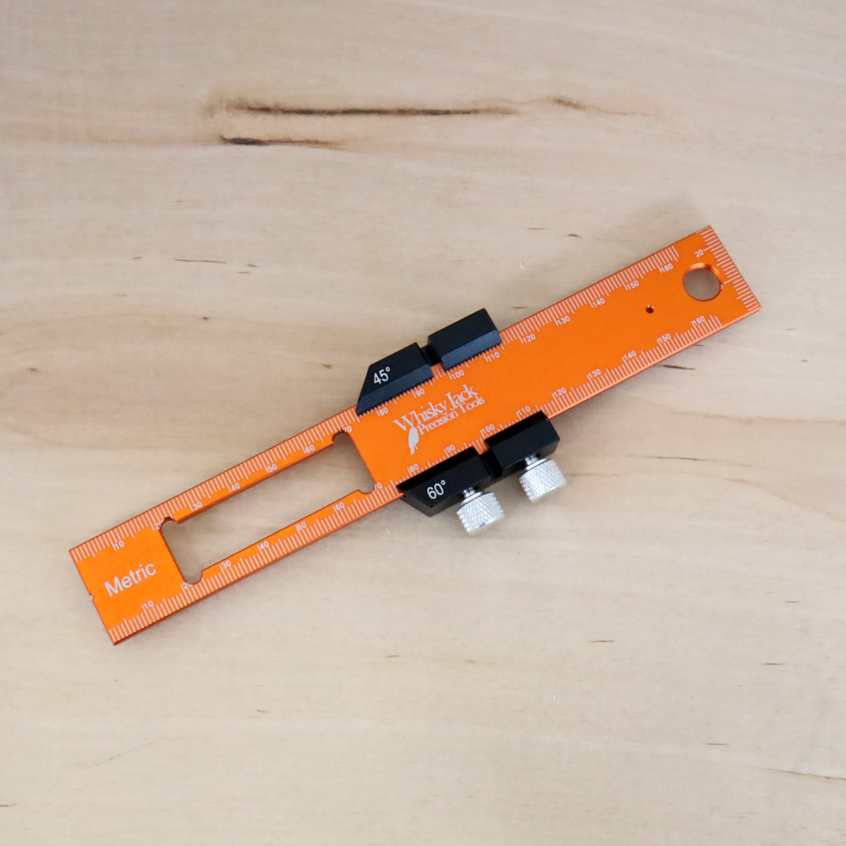 Crafted from high-quality aluminum alloy and CNC-machined for exceptional accuracy, the ruler features a striking electroplated orange coating that resists wear and fading, ensuring long-lasting performance and visibility. Its standout feature is the adjustable stopper, equipped with two thumb screws that allow you to lock it securely in place at any position along the rule. This ensures slip-free, consistent markings every time, and supports precise angled measurements at 45°, 60°, and 90°. The stopper also functions as a stand, keeping the rule upright for easy use of the end graduations—ideal for machinery setups.